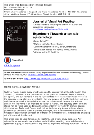 Schwab, Michael, 2015. ‘Experiment! Towards an artistic epistemology’, Journal of Visual Art Practice, DOI: 10.1080/14702029.2015.1041719