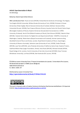 De Assis, Paulo, 2013. ‘Epistemic Complexity and Experimental Systems in Music Performance’, in Experimental Systems–Future Knowledge in Artistic Research, ed. By Michael Schwab, Leuven: Leuven University Press.