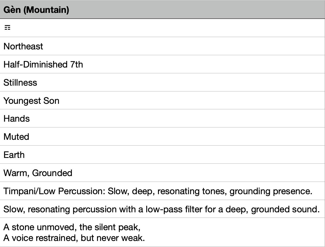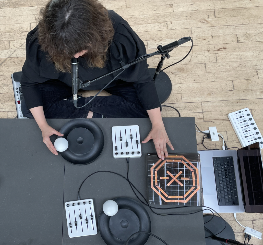 The Bagua is a custom built midi-interface, designed to spatialize instrument groups and spatial trajectories in SØSTR performances, used with Ableton and Xp4l. It is inspired by the Bagua (Chinese: 八卦; pinyin: bāguà; lit. 'eight trigrams') which is a set of symbols from Chinese culture, intended to illustrate the nature of reality as being composed of mutually opposing forces reinforcing one another.