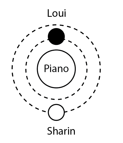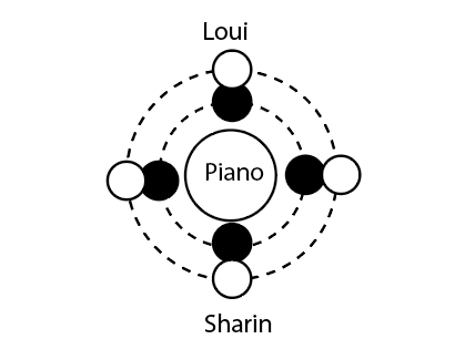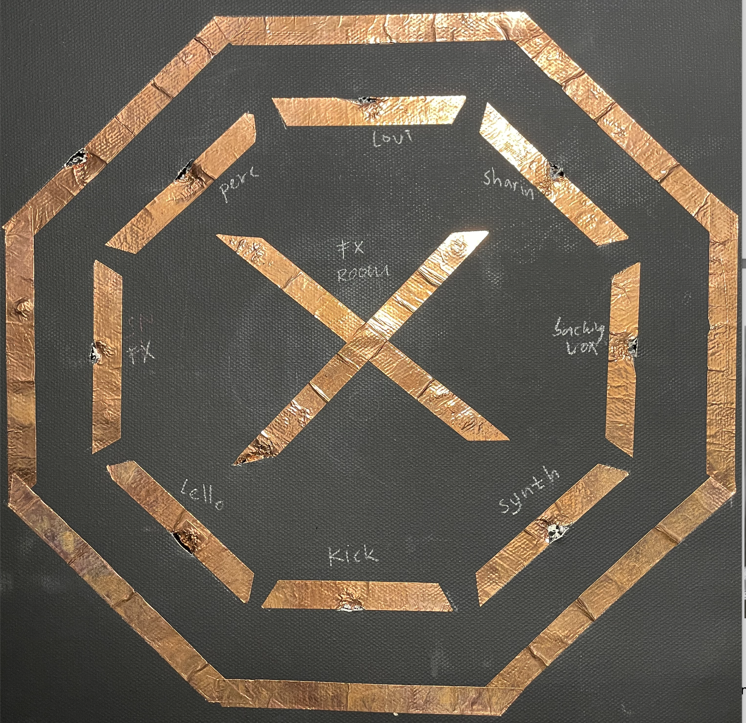Thematically it is inspired by the expansion of the universe and orbiting celestial bodies. What emerges when we let go of a fixed center? Whether in love, in sound, or in our understanding of the universe, what new possibilities emerge when we embrace the unknown, the decentralized, the ever-moving?
