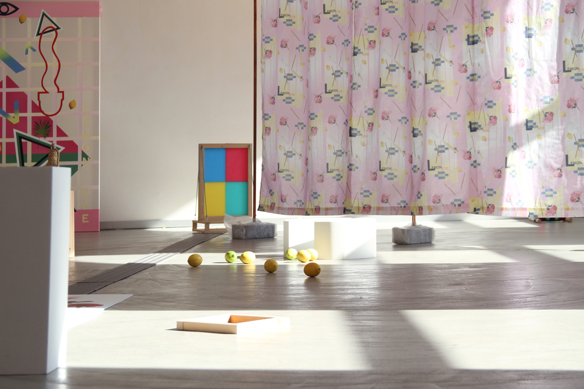 Trenza interweaves symbols such as lemons, coffee grains, flowers, pigment, pencils, and glitter, already seen in Un Atletismo Afectivo. This use of materials is seen in works such as Gimnasio esotérico and Lemonade, exhibited at the Fundación Bilboarte (July-August 2016), Sala Oxford, Zumaia (October-November 2016), and Getxoarte (November 2016).