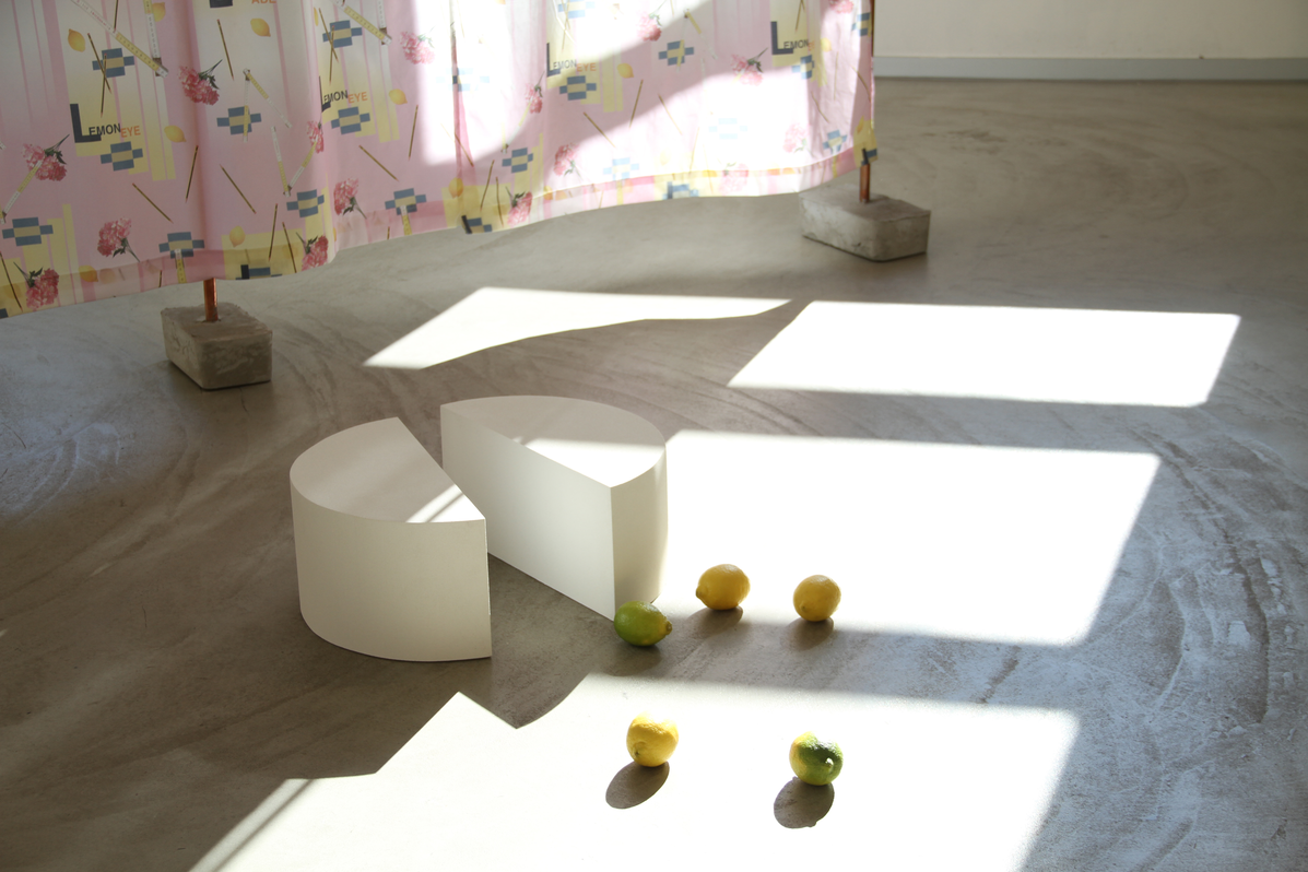 Trenza interweaves symbols such as lemons, coffee grains, flowers, pigment, pencils, and glitter, already seen in Un Atletismo Afectivo. This use of materials is seen in works such as Gimnasio esotérico and Lemonade, exhibited at the Fundación Bilboarte (July-August 2016), Sala Oxford, Zumaia (October-November 2016), and Getxoarte (November 2016).