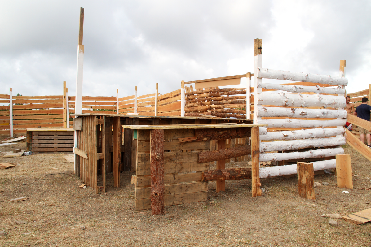 In the architecture of the spaces, the stands for the celebration require walls, a roof, an entrance, and space for a fire. But they can also include a pit latrine in the most hidden part of the terrain, spaces for eating, a dance floor, a bar, or a tower.