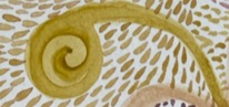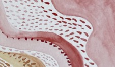I skapandet av Kontrast, svitens första sats, formades initialt en tydlig idé om styckets form och partiturets formgivning. Utifrån en del av målningen, en röd spiral (se figur 4), fick jag idén om att placera fragment i partituret utifrån just den formen. I Kontrast är styrningsgraden något högre än i Interlude eftersom formen följer en slags struktur. Vissa fragment är längre och mer genomkomponerade än i Interlude. Min tanke var att ge instruktionen följ spiralens form men lämna det fritt för musikern att spela fragmenten inifrån och ut eller utifrån och in.