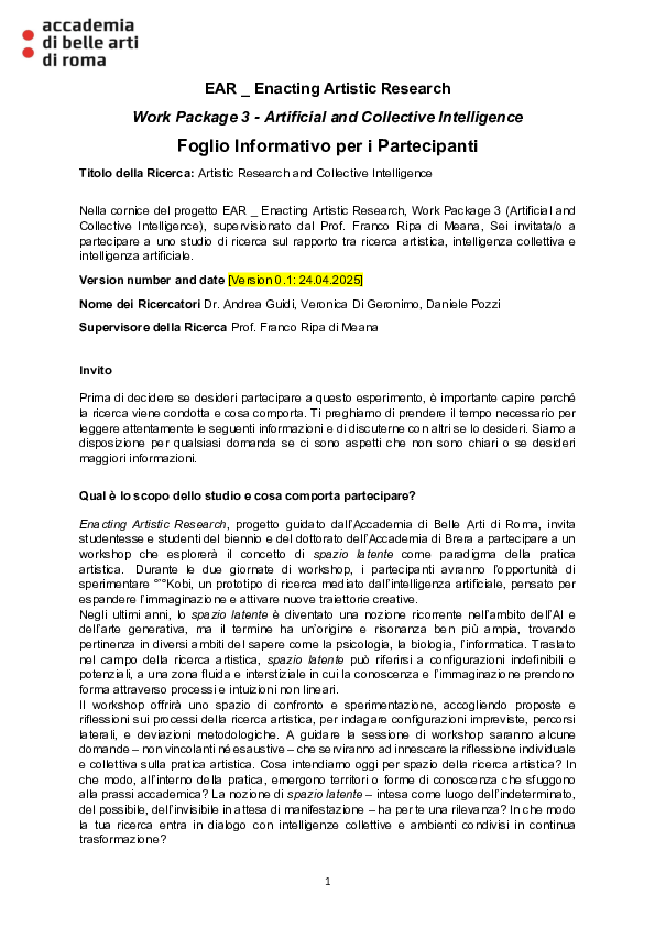 L’attività è promossa dall’Accademia di Belle Arti di Roma nell’ambito del progetto Enacting Artistic Research.