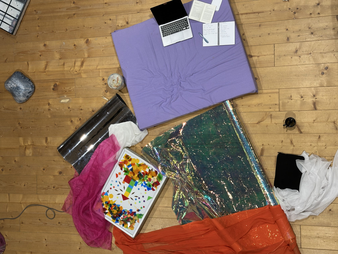 Lopulta ei myöskään tuntunut luontevalta rajata kysymystä vain yhteen kysymykseen, vaan näin syntyi kolme kysymystä, jotka tuntuivat itselleni luontevilta suunnilta lähteä tarkastelemaan aihetta. Näiden kysymysten taustalla on ajatus hyvinvoinnin ja jaksamisen teemoista, taiteilijan työkaluista sekä valon potentiaalin tutkimisesta leikin kontekstissa.