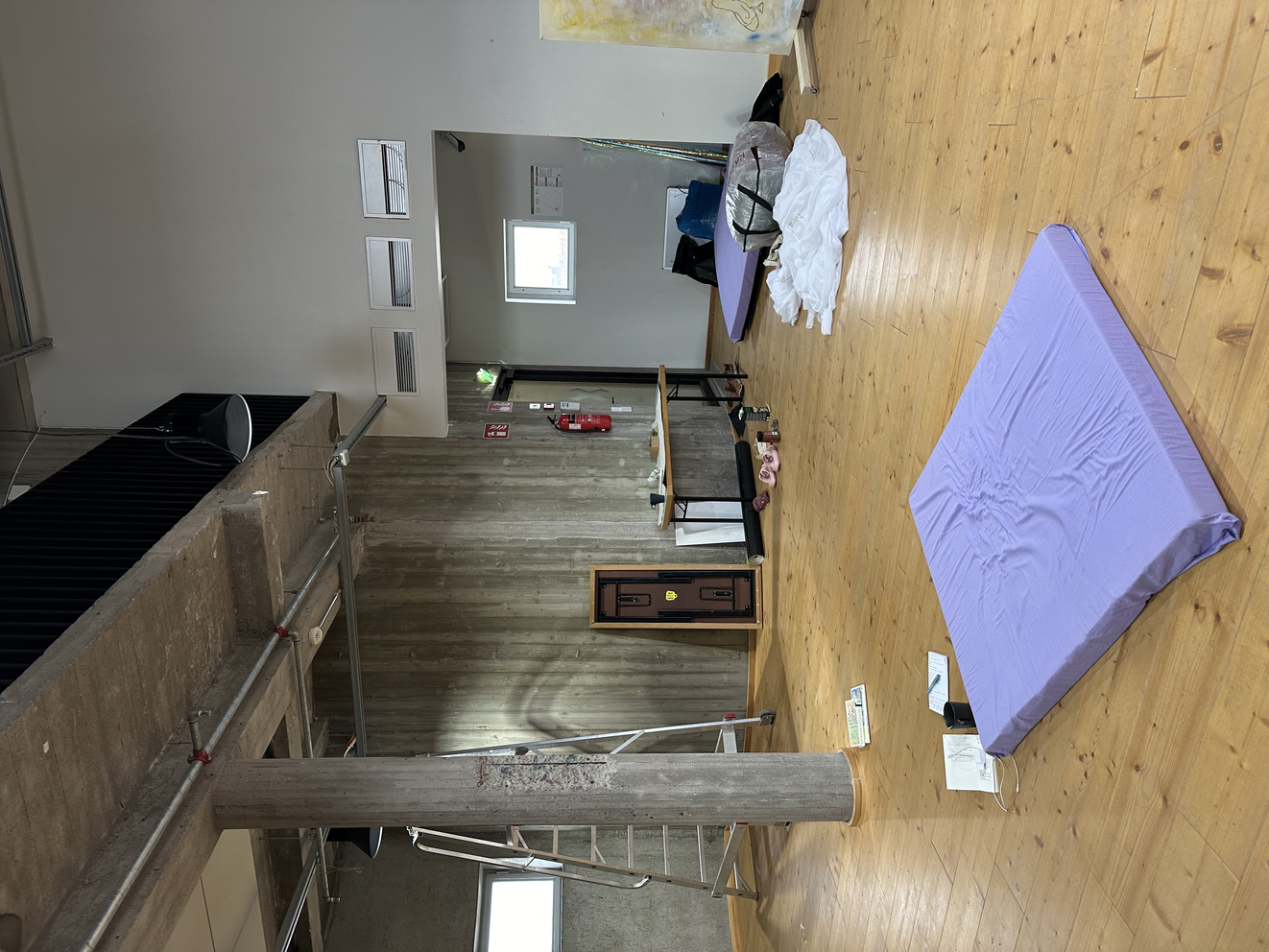 Työskentely sisälsi useita eri vaiheita: Suunnitteluvaiheesta ennen kokeellista osiota, yksin tilassa työskentelystä, yleisölle avoimesta työpajasta sekä työpajan jälkeisestä havaintojen läpikäynnistä ja avaamisesta. En ollut ennen työskennellyt tällä tavoin, joten matkaan mahtui laajalti uuden oppimista, kokeilemista ja ajoittain aikamoista tunteiden vuoristorataa. Ensimmäisen viikon tilassa käytin tilassa orientoitumiseen, yksin leikkimiseen ja puhtaasti erilaisten olemisen tapojen tutkimiseen. Tuon työskentelyviikon aikana pinnalle nousi roimasti erilaisia huomioita. Ajatuksia heräsi niin yksin leikkimisestä kuin kokijoille tilan luomisesta, sekä näiden välisestä yhteydestä. Näitä pohdintoja tulen seuraavaksi avaamaan. Tarkempia päiväkohtaisia harjoitteita, kokeiluita ja tunteita avaan enemmän liitteenä löytyvässä työskentelypäiväkirjassa.