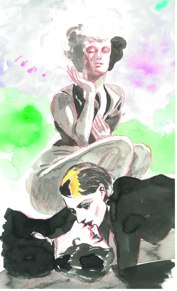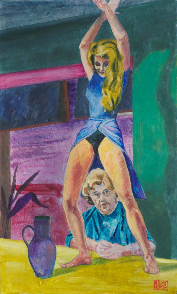 I did not want to give up the sense of camp which for me is more than an aesthetic: the mixture of flamboyance, exaggeration, embarrassment, and seediness had been dear to my artistic expression so far and I was reluctant to give up the mode of irony and parody which is inevitably connected with camp. Along with researching a body of literature (predominantly analyses of films through the lens of queer studies and theory), during the first two years of my exploration, I created a series of paintings and illustrated a collection of lesbian poems by Andrea Vatulíková.