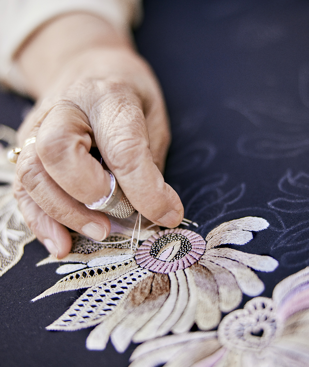 However, the mantón embroidery and, particularly, enrejado, offered women a socially accepted craft that also granted them a degree of financial independence. Using a foam pad placed against a chair’s backrest, they engaged in the meticulous process of weaving silk strands and knotting them into the enrejado design. In doing so, they not only contributed to Cantillana’s cultural heritage but also secured savings and elevated their household’s economic standing.