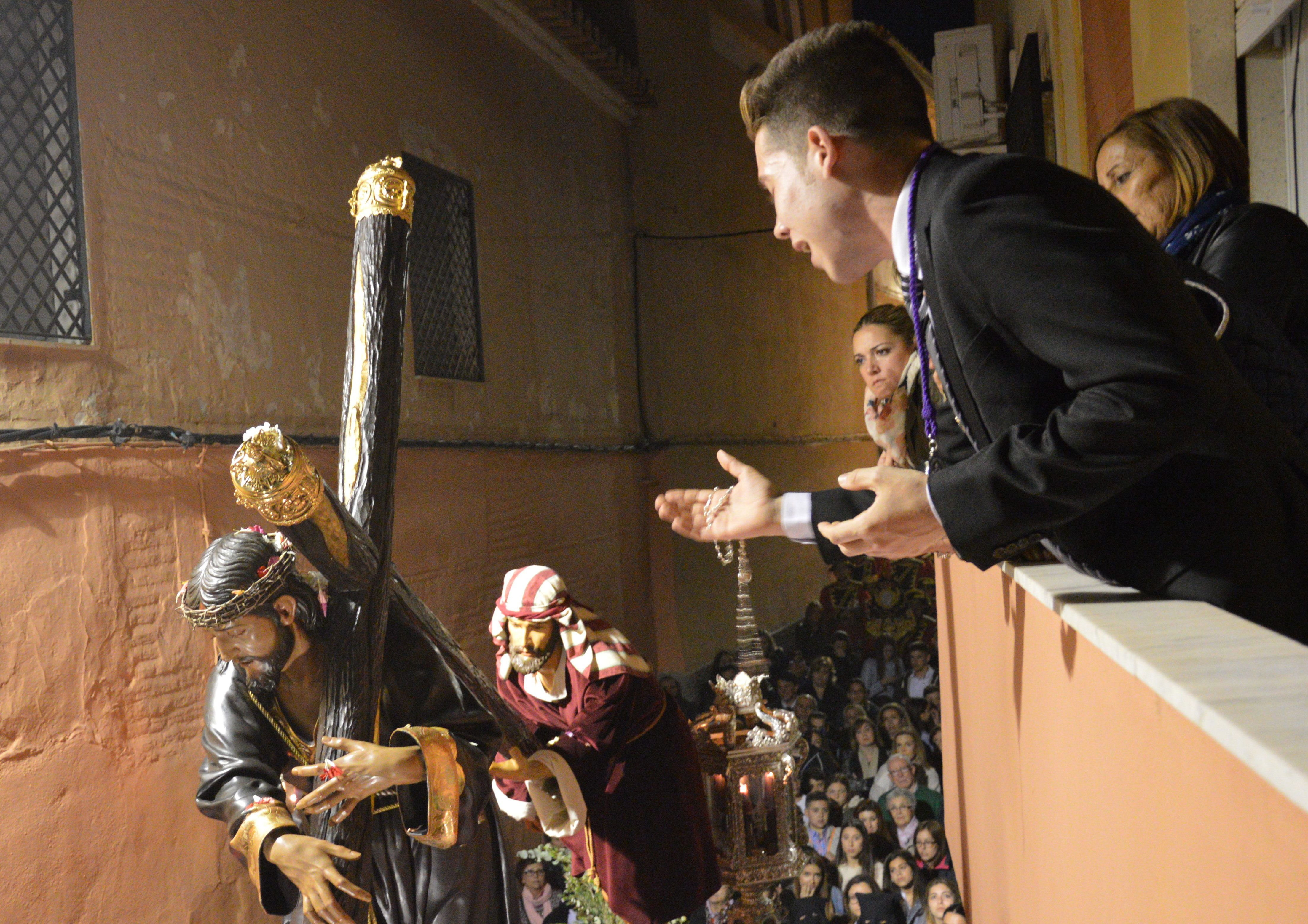 A saeta is sung as religious images pass by during a Semana Santa procession, often from a low balcony. As the voice begins to be heard and the crowd searches for its source, the capataz (procession leader) instructs the costaleros (bearers) to stop. The saetero may be hired by someone from the cofradía (brotherhood) that owns the image or may be an impromptu devotee wishing to express their faith or artistic talent.