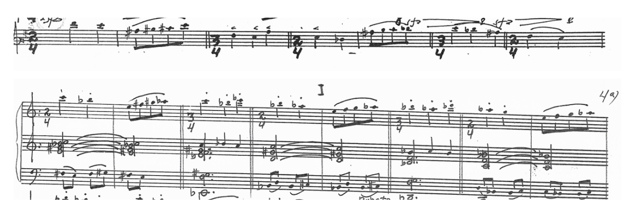 At first, I attempted to analyze the formal structure of the piece to better organize my practice and understand its sections. However, this proved unfeasible. The handwritten nature of the score made it incredibly difficult to read, as previously mentioned, and my limited familiarity with the musical language of the composition compounded the challenge. Additionally, I lacked sufficient time to conduct a thorough analysis, further hindering my ability to grasp the piece as a whole. This difficulty, combined with the effects of my overwhelming perfectionism, rendered understanding the score an almost impossible task—one that I postponed for nearly a year.