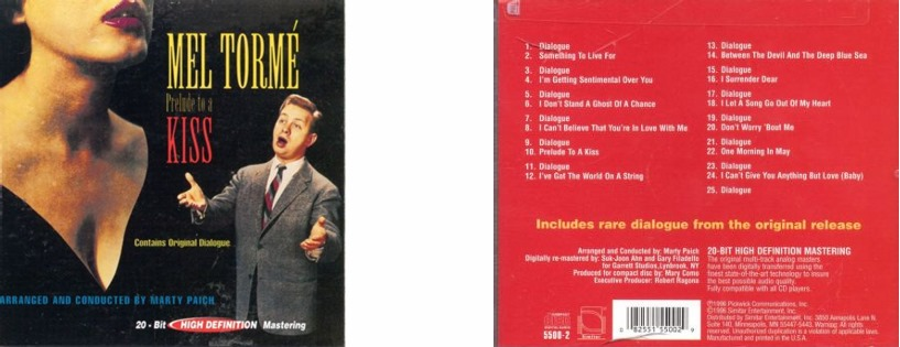In Fall of 1955 Mel Tormé toured internationally performing in Australia and the UK. Coinciding with his first visit to Europe, another song (“Mountain Greenery”) from a live album he recorded with Coral records later hit charts in the UK in spring of 1956. In February 1957 he recorded “Mel Tormé Sings Fred Astaire” with Marty Paich in Los Angeles. Bethlehem Records, dealing with financial issues, re-released “The California Suite” with extra tracks, and the label shut down after their final release of Tormé “Songs for Any Taste”. In the summer, he recorded an album with Philips Records for his British fans during his visit and called it “Tormé Meets the British”. In November 1957, Tormé signed with Tops Label to record “Prelude to a Kiss” which was marketed under different titles and cover art to increase visibility. [6:6]