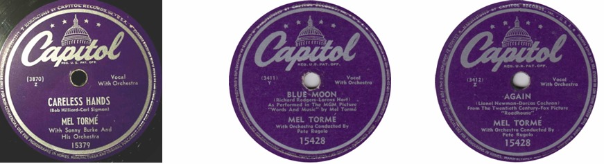 He signed with Capitol Records in 1949 and released his first number one hit: “Careless Hands”, followed by other of his hits such as “Blue Moon” (#20) and “Again” (#3).[12]