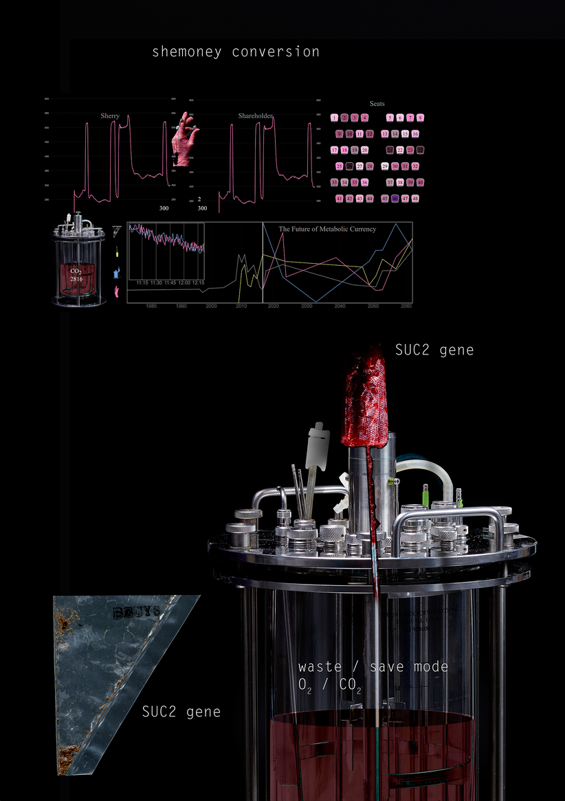 With the design of an experimental process and the provocative production of a semi-artificial, semi-natural being and the equal treatment of apperatuses, humans and non-humans we question the history that the performative production of material goes back to and how its alteration through technological renewal will in future change our understanding of ecology and art