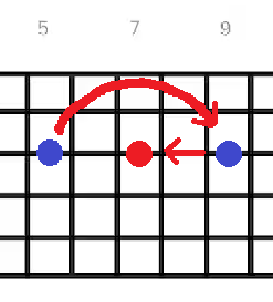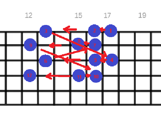 Denne strukturen representerer pentatonskalaen, spilt oppover. For at denne skal spilles på andre strenger, må den tilpasses. Pentaton skalaen er ofte assosiert med blant annet blues og rock, og er en fin mulighet i mange tilfeller.
