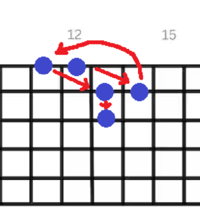 Hvis man for eksempel er på et nivå hvor anstrengelsen ligger i den harmoniske oversikten, vil jeg argumentere basert på min erfaring med improvisasjon for at det også er en anstrengelse å skape linjer, samt fokusere på intensjon og tilstedeværelse. Vist slik: