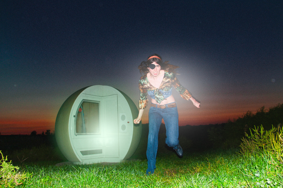 Dans mes influences artistiques, il est inévitable pour moi de mentionner le travail de Cindy Sherman. Dans sa série photographique Untitled Film Stills (1977–80), Sherman joue avec l’autoreprésentation et crée des personnages fictifs qui semblent sortir de films inexistants. Elle brouille les frontières entre la fiction et la réalité, et c’est aussi ce que je cherche à faire dans mon propre travail. Bien que ce le personnage de Modeste Niquette soit un fragment de mon imagination, elle s'inscrit dans une démarche autofictive, où mes propres expériences, mes connaissances théoriques et mes observations sur la culture populaire nourrissent sa construction. Ces éléments se confondent pour former des images dont le rapport au réel est difficile à cerner, mais qui, juxtaposées les unes aux autres, créent un univers étrangement cinématique. Dans ce projet, je puise des inspirations dans les films des années 70 et 80, mais sans chercher à en reproduire la réalité historique. Au final, ce qui en ressort ressemble davantage aux années 2000, une époque que j’ai réellement vécue et qui demeure encore floue et irréelle dans mon subconscient. J'ai une attirance esthétique envers les films réalisés avant ma naissance, et j’aime collectionner des objets vintage, surtout ceux qui dégagent une étrange aura, comme s'ils étaient légèrement hantés. Je ne crois pas vraiment que des fantômes y résident, mais ces objets semblent porter en eux des histoires inconnues, des fragments de vie que je ne connaîtrai jamais. Cette idée me donne des frissons. Dans mon travail, j’essaie de capturer ce je-ne-sais quoi d’un peu glauque, hanté et inexpliqué que ces objets dégagent. En anglais, eerie est le mot le plus efficace pour décrire ce sentiment. Dans son livre The weird and the eerie, l’auteur et philosophe Mark Fisher décrit le eerie comme quelque chose qui concerne l’inconnu. Lorsque la connaissance est acquise, ce sentiment disparaît. Pas tous les mystères génèrent le eerie. Il doit également y avoir une impression que l'énigme pourrait impliquer des formes de connaissance, de subjectivité et de sensation qui dépassent l'expérience commune. J’ai choisi les extraterrestres comme cadre narratif, car c’est un trope paranormal auquel je crois sincèrement, bien que je demeure sceptique quant à la représentation visuelle que les humains leurs ont attribué. Plusieurs OVNIs ont été vus par des humains et certains prétendent avoir eu des expériences avec des extraterrestres, mais personne n’a jamais réussi à prouver à quoi ils ressemblent vraiment. Pour façonner l’histoire de Modeste Niquette, je m’appuie à la fois sur des clichés appartenant l’imaginaire collectif que sur mon propre imaginaire.