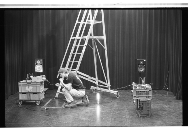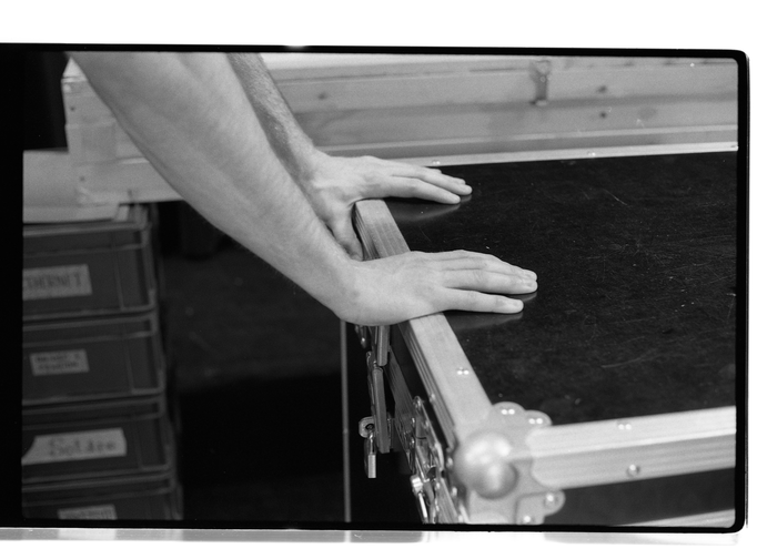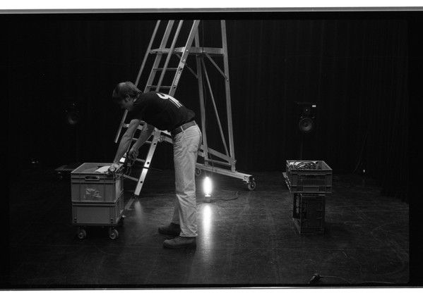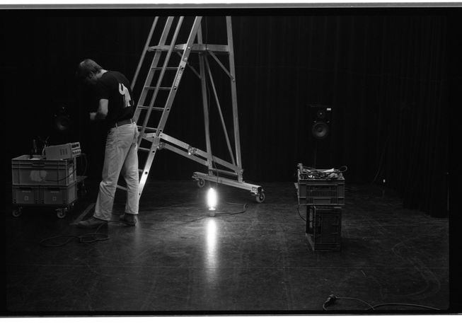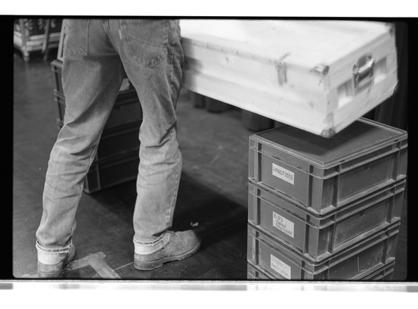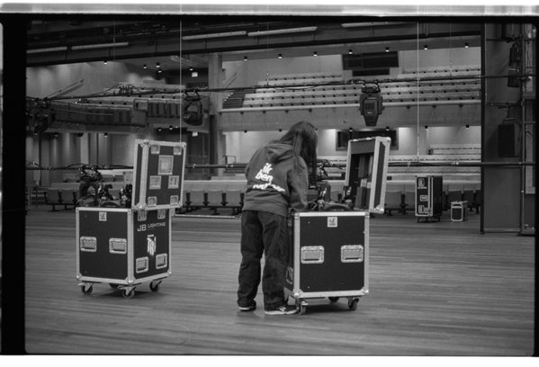 These images show more details and give a different view on the choreographical acts of the technician. In relation to conversation with Johannes Bellinkx about the way framing also creates a certain knowledge for the viewer that there is also something out of frame, creating tension. I also try to become conscious of the way framing decides what information is and is not available to a spectator. The way of collecting/taking photographs perhaps is starting to relate to another theme in my research about exposing the unseen work and proposes a way in which framing can be a way to assist in creating the awareness of an 'essential backstage' not through directly showing it but by making the spectator aware of the presence of what is going on beyond the frame.
