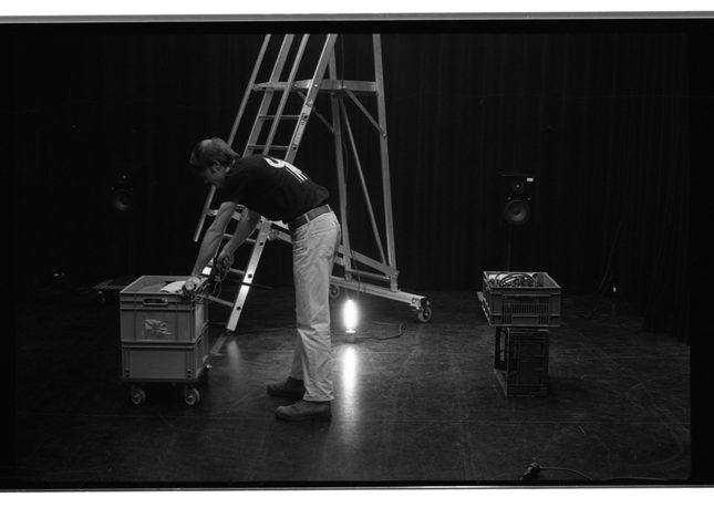 During discussion about the previous captured images the fact that the images are staged, as I am both the person who takes the image as well as the subject. These images also only contain one individual, contrary to many performances and the nature of the work of technicians, which frequently a collaborative effort. For this reason I contacted Theater Rotterdam and captured their technicians in action, hoping they will not adapt their usual performance due to the presence of a camera, as well as being able to capture instances of collaboration as this has not been previously present in my pictures.