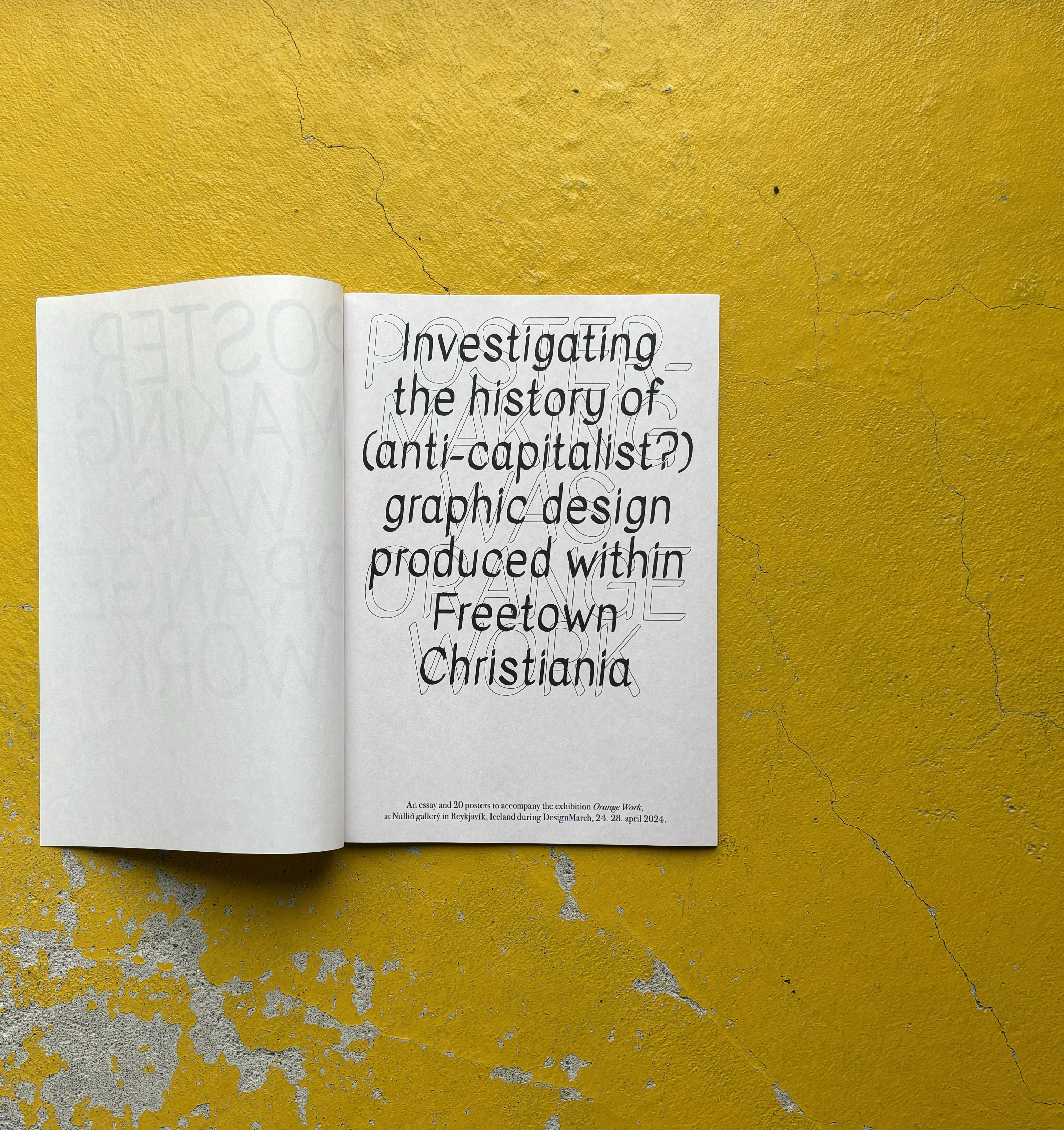 Poster-making was orange work: Investigating the history of (anti-capitalist?) graphic design produced within Freetown Christiania, 2024. Núllið Gallery, Reykjavík, Iceland. (DesignMarch)