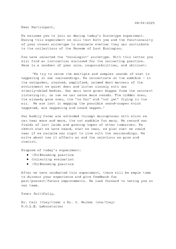 (Nordic) LARP exploring potentially disappearing ecologies and non-human narritives/narrators through role-playing in a site-specific setting. An artistic research project into connection with the other, the non-human, the beyond-human. Narrative found through site and relics we create, world co-created by participants through (role) play.