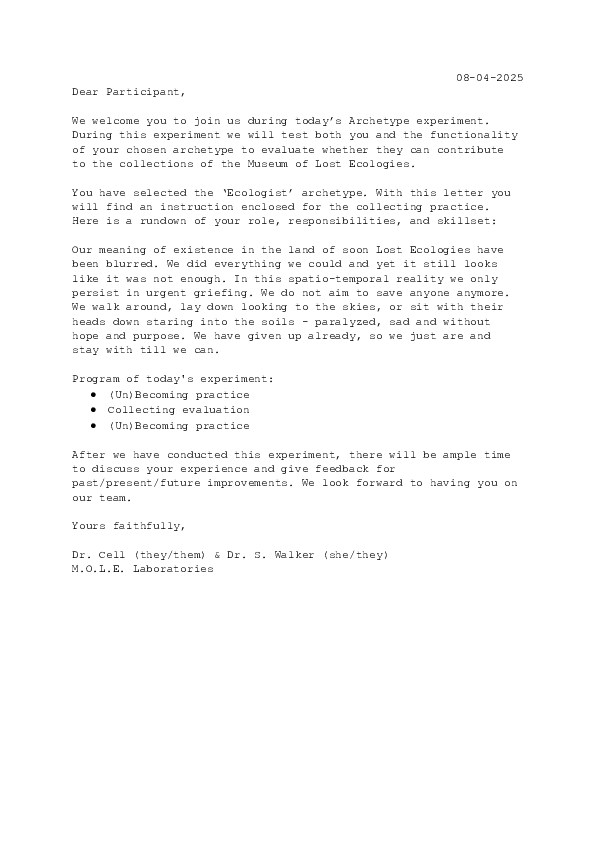 (Nordic) LARP exploring potentially disappearing ecologies and non-human narritives/narrators through role-playing in a site-specific setting. An artistic research project into connection with the other, the non-human, the beyond-human. Narrative found through site and relics we create, world co-created by participants through (role) play.