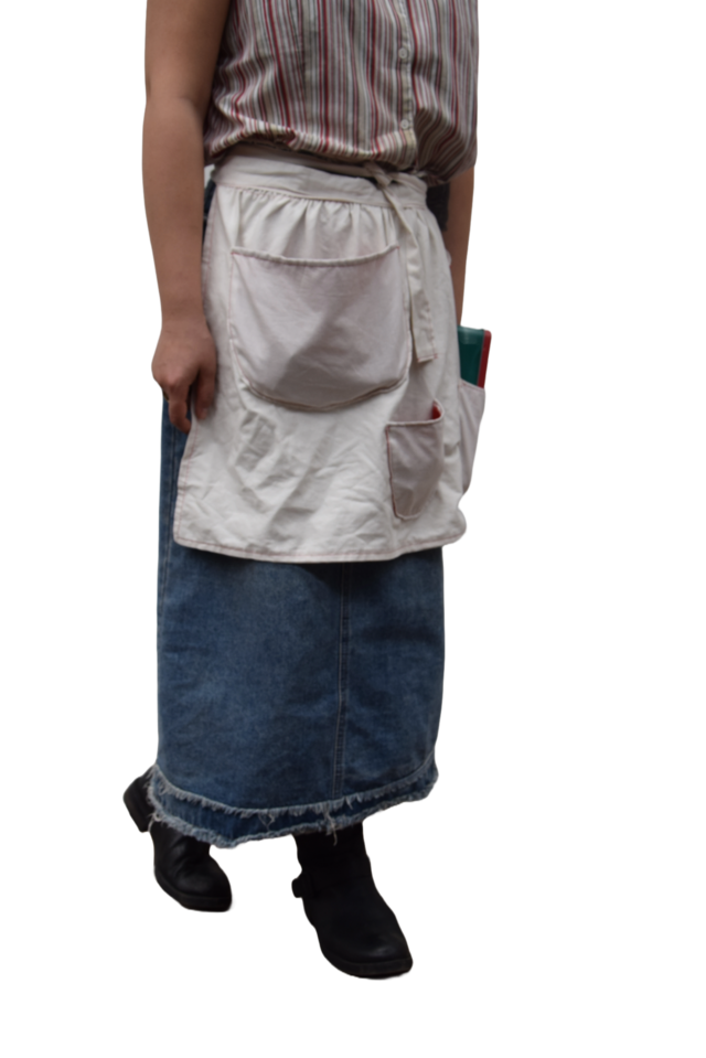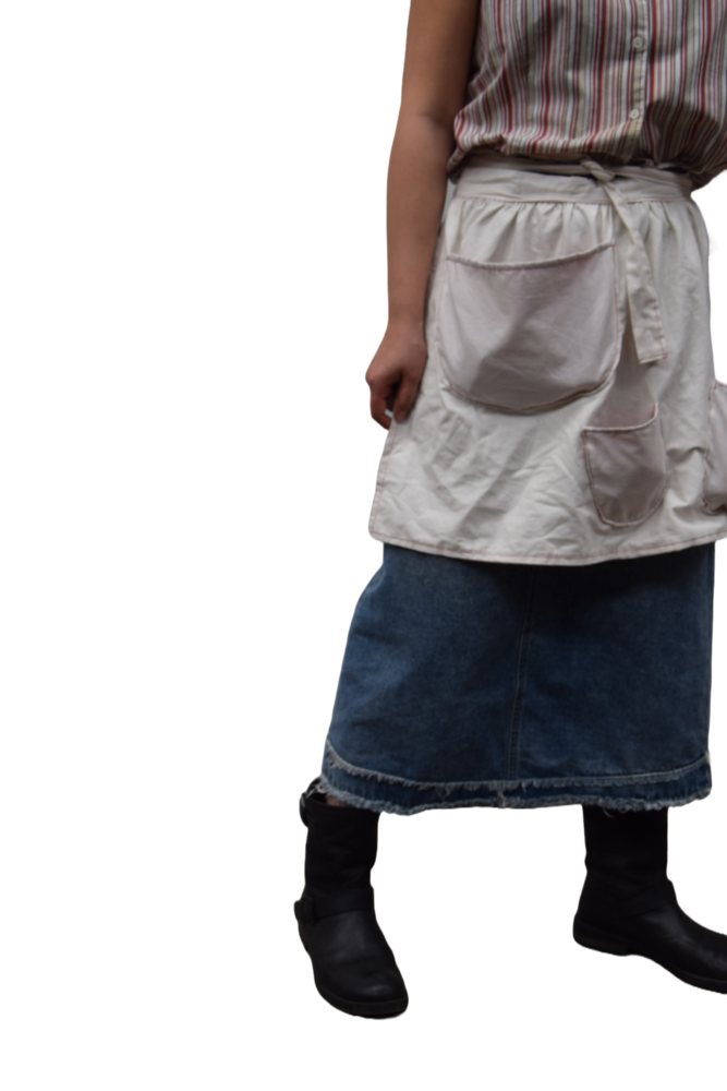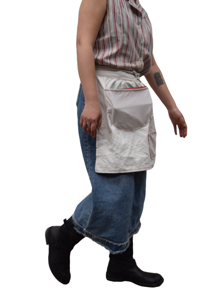 The apron is first created as a carrier for all the tools I need to carry with me. Yet, it's also a custume, and a "scene establisher".