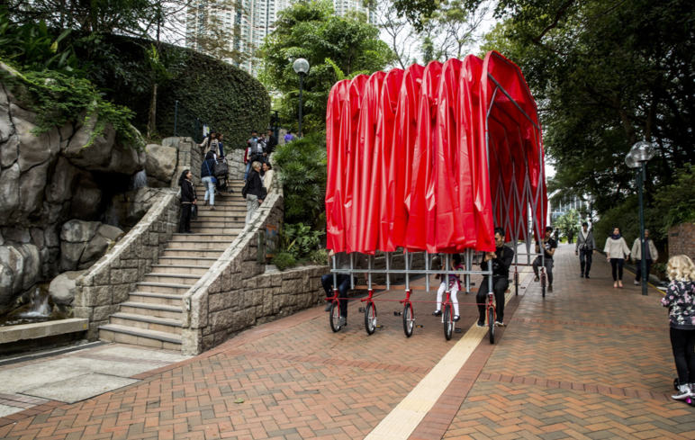 It reminds me of PAO's work, People's Canopy and the tent for Taiwanese Roadside Banquets.