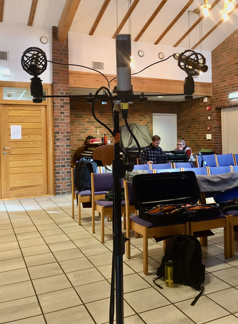 Innspelingane fann stad i Voksen Kapell, eit lite rom med nøytral klang ved Voksen Kirke i Oslo. Her hadde eg spelt inn eit soloalbum tidlegare, og visste at rommet kunne fungere.