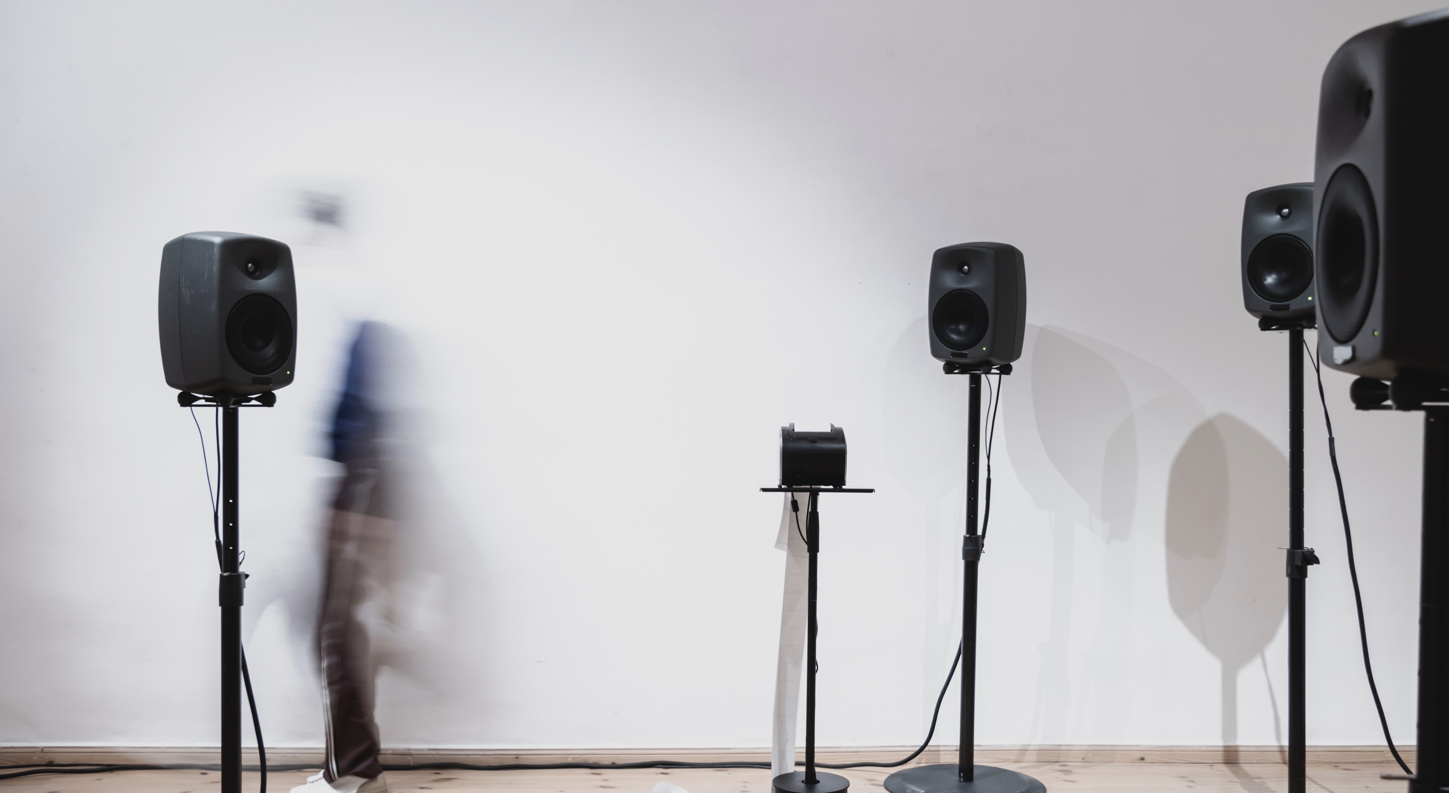 The audience enters a space containing four loudspeakers on stands and a commercial thermal printer for till receipts, built into a console. An AI, trained and staged as an Autopoetry-Apparatus generates advertising texts in the writing and speaking style of the author Rolf Dieter Brinkmann. These texts are vocalized live and spatialized by the four loudspeakers.