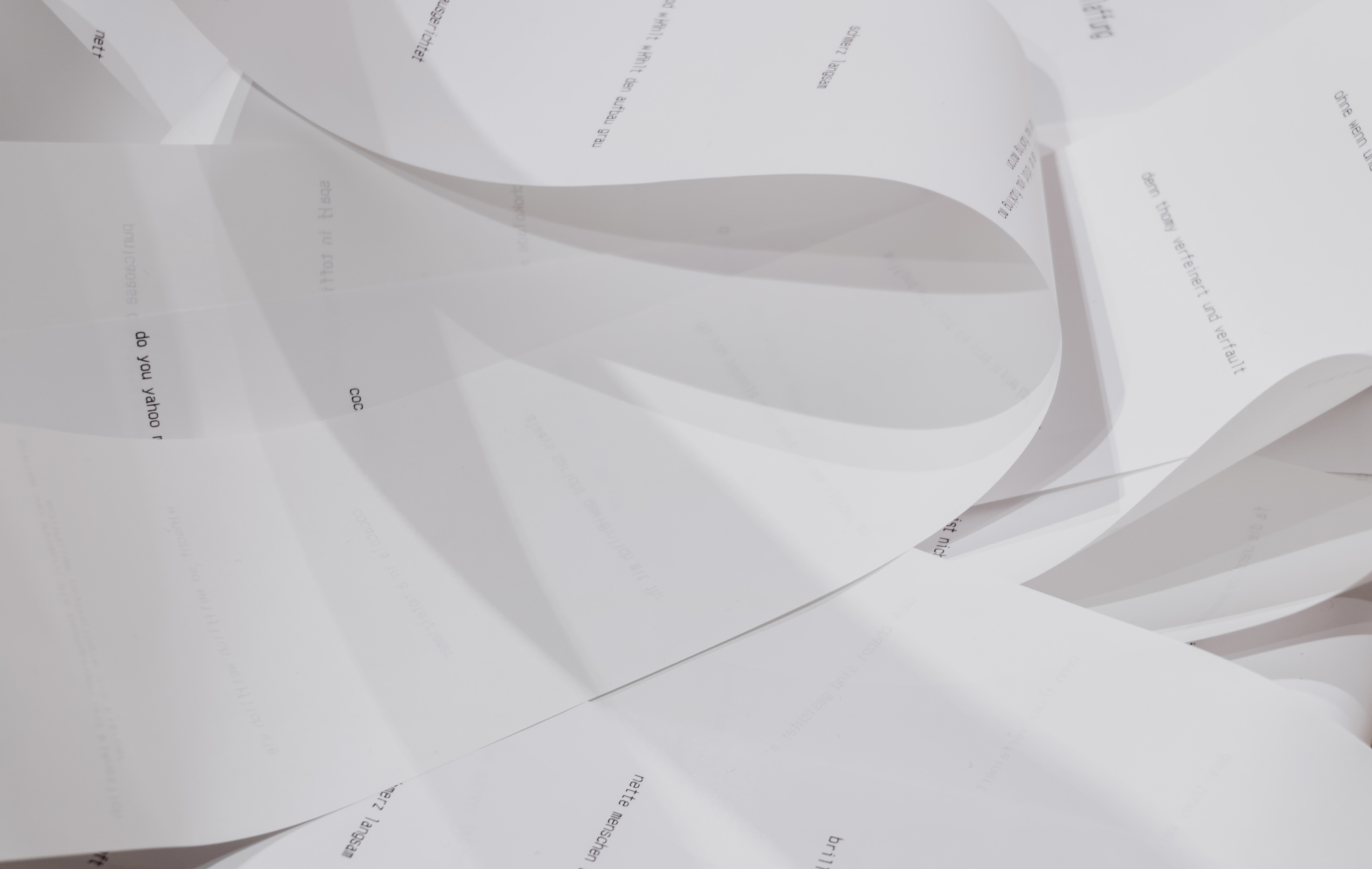 The document’s function dissolves, and the laboriously created and archived content must disappear again due to the medium. The new, momentarily created material evolves, is discussed in order to disappear again.