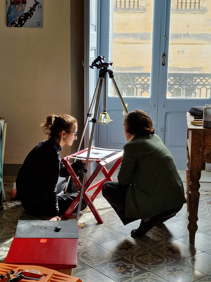 PALAZZO RUSSO, the shared site of our residence and practice, has a very specific architecture and strong, present atmosphere which played a crucial role in shaping our interactions. Its layout invites constant movement, a continuous shifting from “here” to “there.” In this movement offered by its architecture, we encounter one another, and these encounters in turn shape our orientations and trajectories. The movement within the space is contagious; we come together and drift apart as we "commute" within the house.