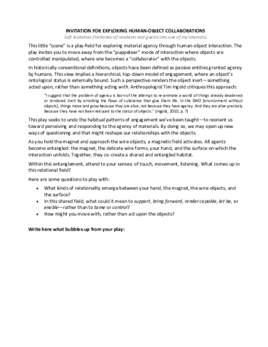 In this setup, I appreciate that the movements of the magnets are not entirely predictable or controllable. I initiate the interaction by moving the magnet and then observe and listen to how the objects respond. Their response, in turn, informs my next gesture. These interactions offer a space to practice decentering the human while exploring material-agential qualities, thereby opening up possibilities for collaborative making. This process offers a metaphorical lens for thinking about group dynamics, as one observes how objects influence and respond to each other within a shared relational field.