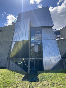 We spent three days at the Steinhaus. During this time, I listened to the space, wandering in its metal and sharp, neat architecture, remaining receptive to the impressions and effects it awakened. Ultimately, I chose to incorporate the metal plates I had brought from Graz, as they resonated with the space’s material, color, shape and form, establishing a dialog between the two.I began to connect the plates with wires to the memory capsule objects I have been collecting from various spaces. By attaching a transducer speaker to the plates, my intention was to allow the movements of sound to influence the networked web of metal wires, linked to the memory capsules. In doing so, the sound would play through and with the metal plate, the metal wires and the memory capsule objects. The video excerpt provided demonstrates a prototype of this concept.