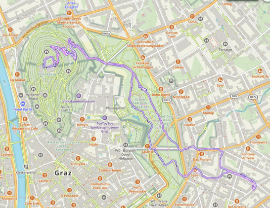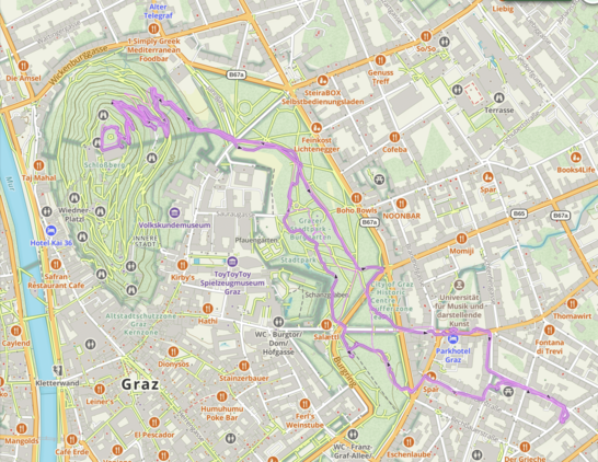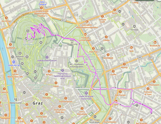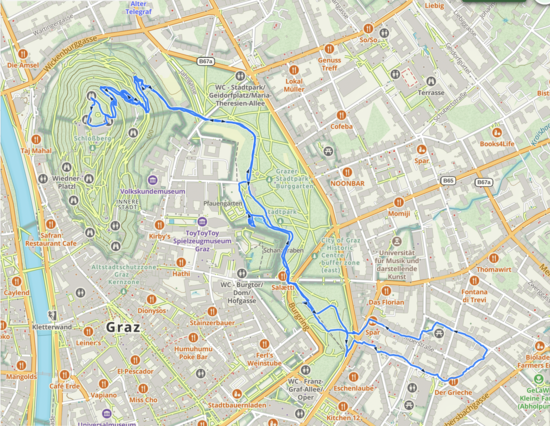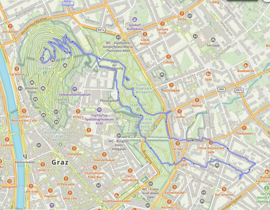 I began a daily, repetitive walk along the same route—between Reagenz and Schlossberg—passing through Stadtpark and ascending to the top of Schlossberg hill, where I frequently encountered blackbirds. My movement along this recurring path helped orient my awareness to the first space of the residency and facilitated tuning into its specific spatial and acoustic properties.