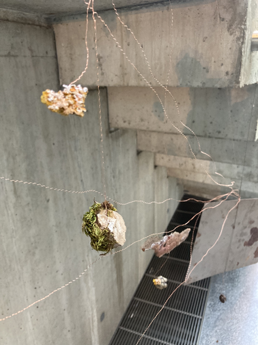 I began learning about lichen movements and growth patterns, discovering that they follow centripetal movements, developing inward toward a center along curved trajectories. A centripetal force, guides motion toward a central axis or the center of curvature. This inward pull, combined with outward curvature, resonates with the singular-plural entanglements I’ve sought to navigate during this residency.