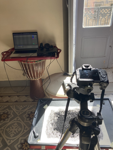 The building's architecture, offers patterned and repetitive movements, that shapes our actions and holds us in entangled zones of relation. My shared workspace with Nayarí Castillo, was in a transitory part of the house, making it a space of active movement of transition, a hub for passing-through. In this space, I sought to trace how this continuous movement affected my attention and listening while engaging in reading, writing, composing music, editing soundscape recordings from both Lecce and Graz.I also reflected on how this movement shaped my orientation within these tasks.To maintain an intimate thinking space and avoid intruding upon the shared soundscape, I primarily worked with headphones. This practice heightened my sensitivity to movement-based visual information, and I became increasingly interested in the movement of magnets as metaphors for social relationality.Working in a shared, frequently visited space drew me towards reflecting on the patterns of movements and encouraged me to imagine and listen from the perspectives of others.Here I listened into the question: How do I consider my listening as part of a network of other listeners and other presences? How does this effect my creative thinking/making? Through this experience, movement based, patterned, interrupted, contagious, inspired thought patterns emerged.