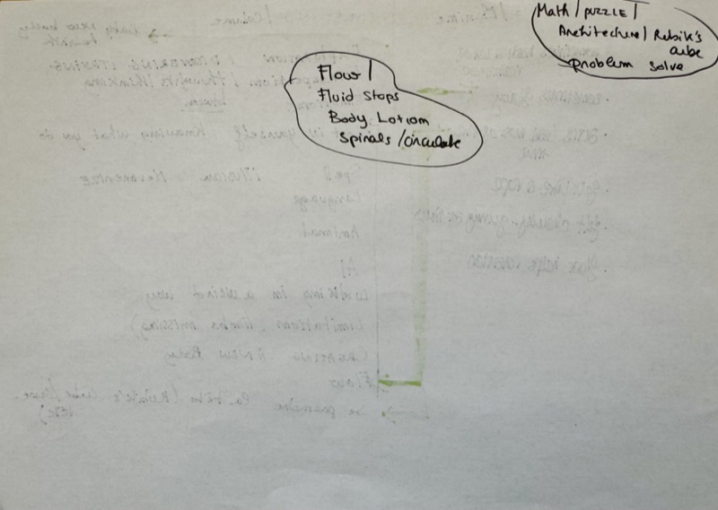 - The notations suggest a tension between conscious decision-making (“solving a puzzle,” “finding logic”) and the subconscious flow of the body (“letting go,” “falling,” “surprise”). This highlights the balance dancers may strike between being in control of their movement and surrendering to instinct or impulse.