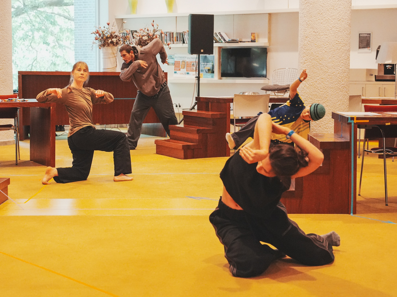 A first choreographic work is emerging from the engagement with cross-style principles: my solo piece good for you will premiere in May 2025. In doing so, I can contribute to the research also through the lens of the artistic process and the lived experience of undergoing a stage creation. The performance therefore acts as a continuation of the investigation, offering a field in which the principles can unfold through practice, experimentation, choreographic decision-making and audience reception.The score of good for you follows an improvisational structure, with each section of the piece more or less having one of the cross-style principles as a main ingredient.The movement is explored through a metaphorical angle and translated into a narrative of transformation. Fix point becomes an act of holding on, tracing, a mode of discovery, repositioning marks change and illusion manipulates perception – each principle pointing towards patterns of human social behaviour. These choices and the movement material, while emerging from physical inquiry, are informed and charged by insights from the one-on-one sessions. The thematic weight and the dramaturgical proposals of the inquiry of the audience perception are feeding directly into the fabric of the performance. The choreographic process of the solo, in connection to the research of TreasureFlow follows a similar logic and methodology to Meg Stuarts Disfigure Study from1991. In the Belgian TV program Ziggurat (1996) she describes it as follows: