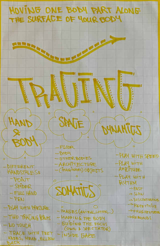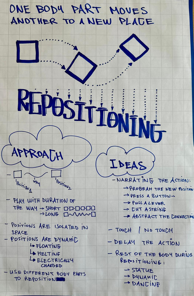 - - the formulation of basic ideas through physical solo explorations (improvisation or observation)