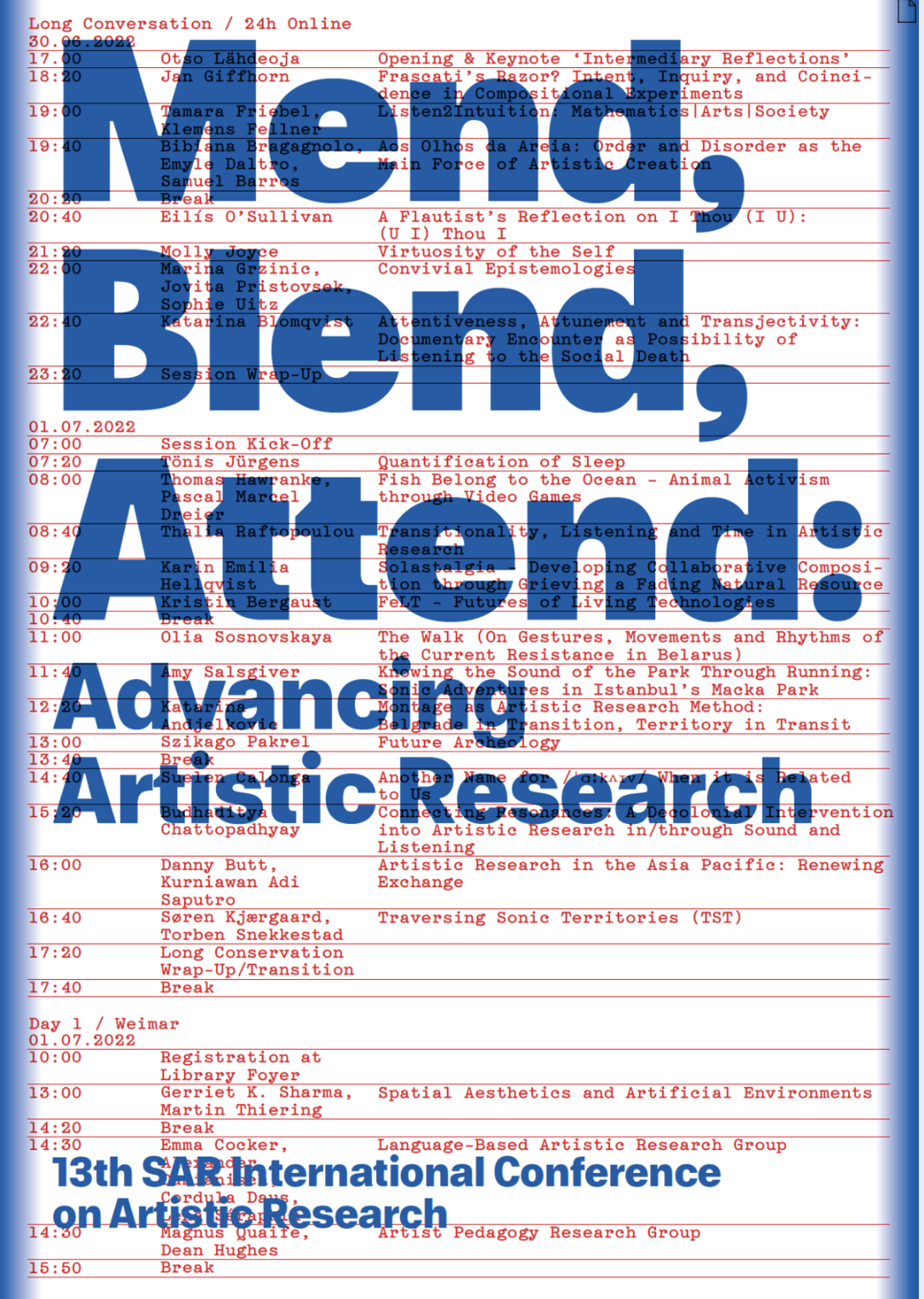 Additionally, I gave a brief introduction to work jointly done with Steve Dutton, at the Gathering for the Special Interest Group, Language-based Artistic Research.