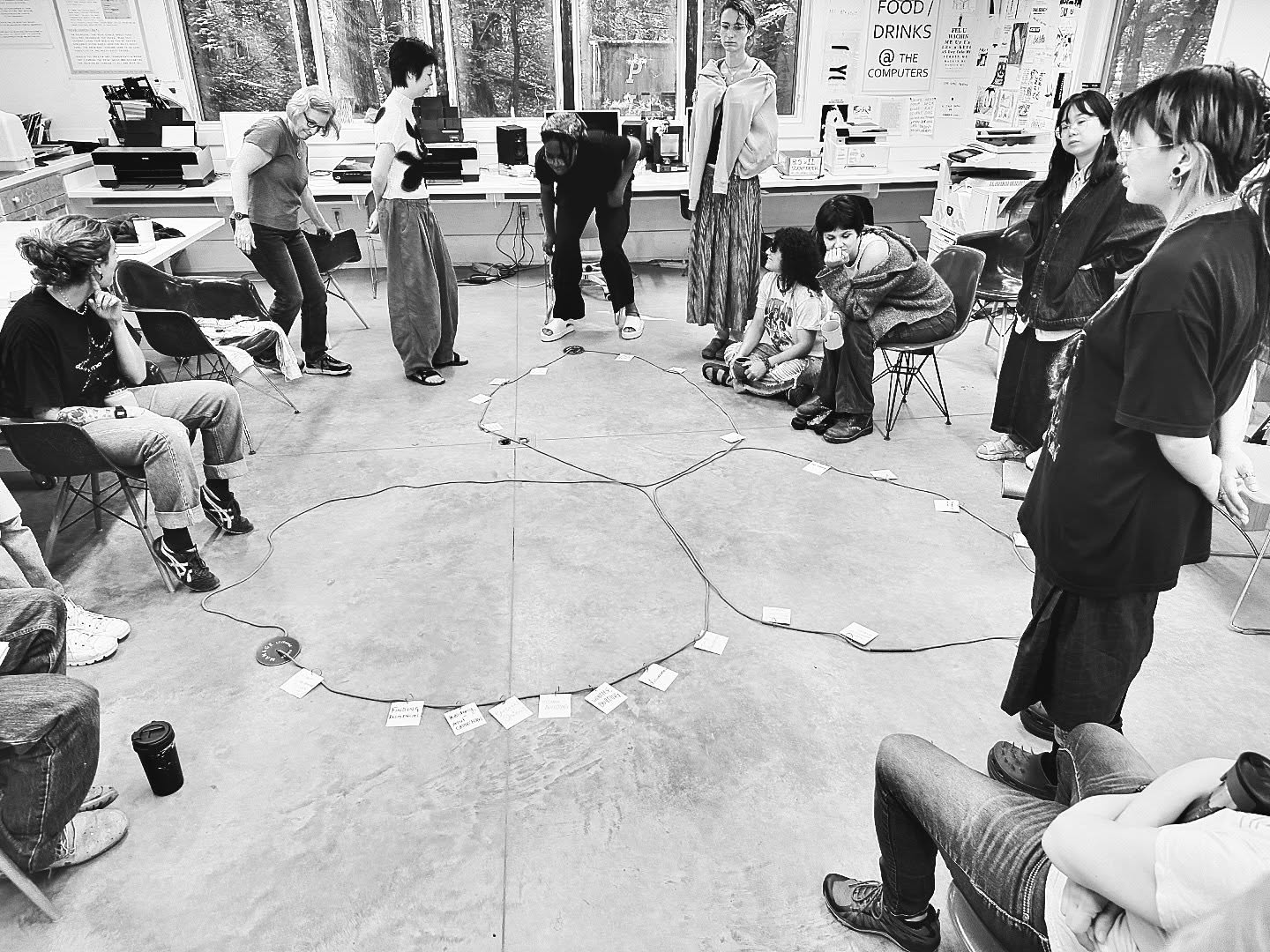 In its third iteration in September 2025, the Braid workshop for Longform took place across two meetings. The first morning of the residency offered an updated introduction to bring together philosophies and institutional histories that underlie art making, while methodologies that inform art practices broaden. This was followed by multi-group work using the Braid model to ground personal approaches on the second day.