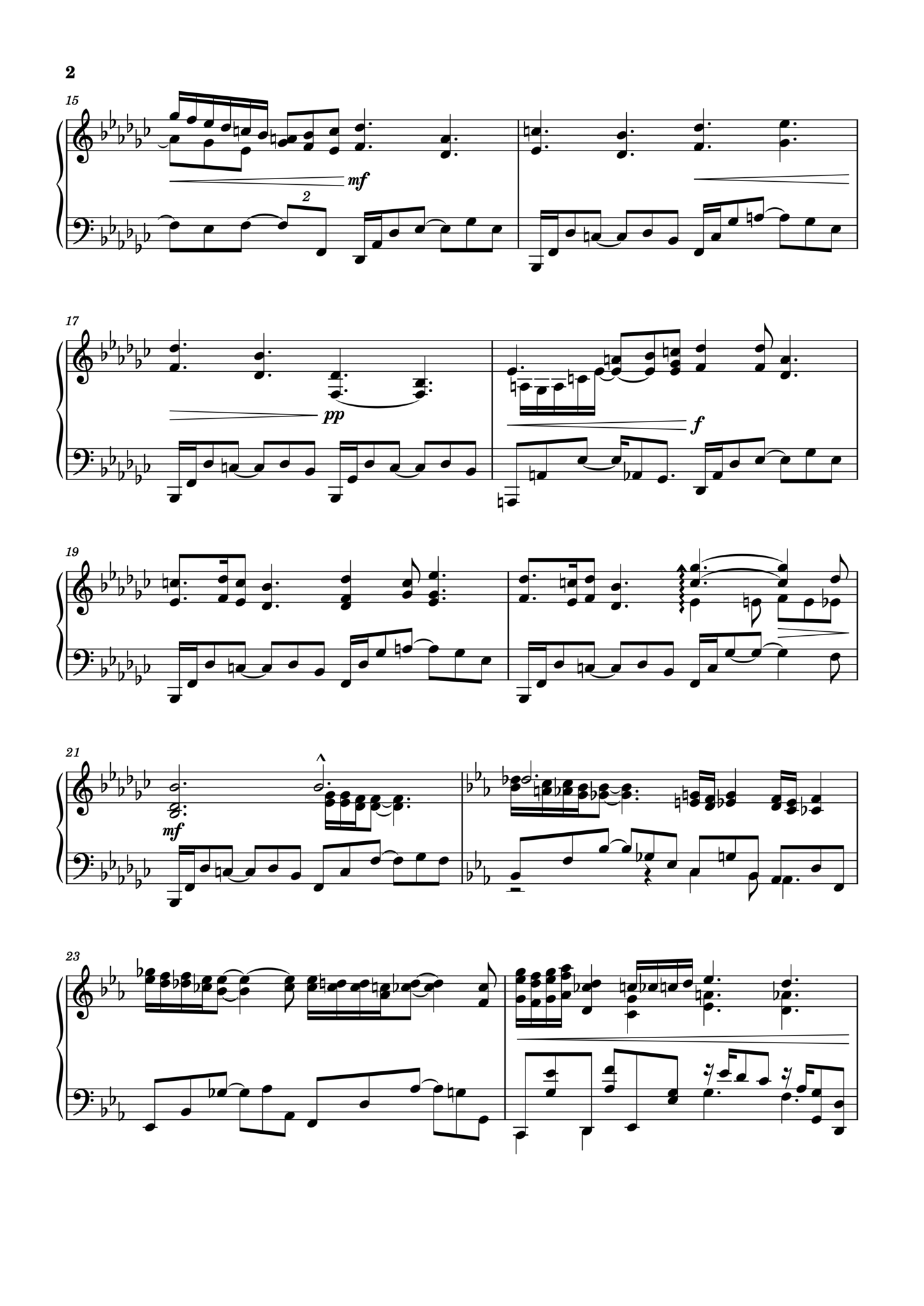 Writing and understanding this architecture made me realise that in this kind of piece, the essential element is the direction of the different lines. It therefore seems essential to me that these movements should be emphasised above all else. Either through the use of dynamics or through a slight rubato.