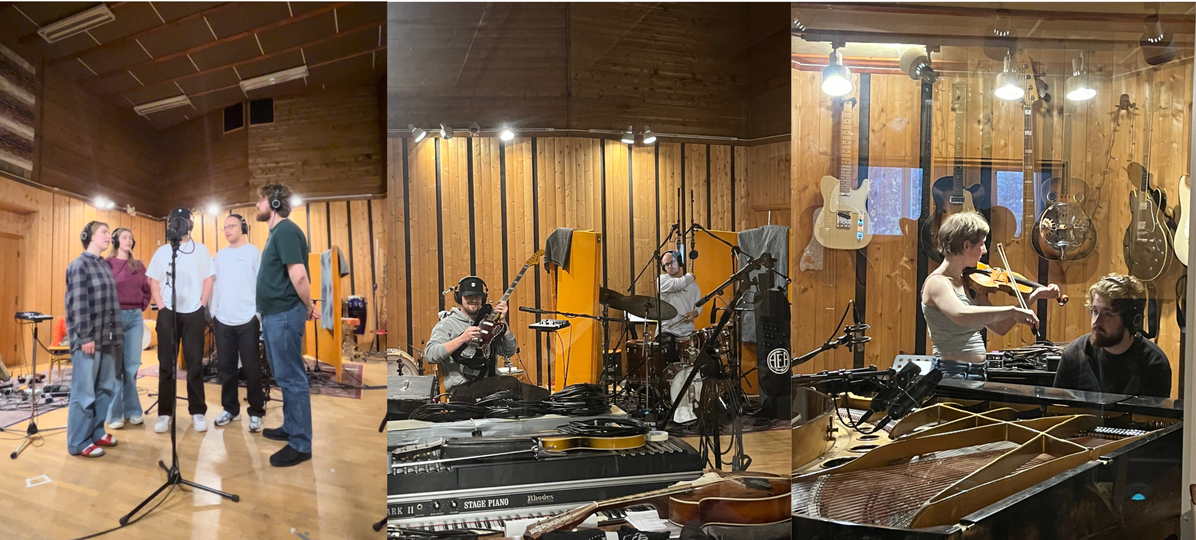 Stryk på "Tankerom" og outroen på låta "Relasjonsorkester" er liveopptak gjort gjennom lydkort fra rom 401 på NTNU i Trondheim, et helt vanlig band- og undervisningsrom. Vokalen på "Tankerom" er gjort separat i Studio A på Universitetet i Agder ved hjelp av Sander Nystad Weum. Bukkehorn på "Hei, hallo" er også gjort separat i ettertid i Studio A, med Anders Skjerdal. Resten av albumet er spilt inn på tre dager i Athletic Sound i Halden med Dag Erik Johansen bak spakene.