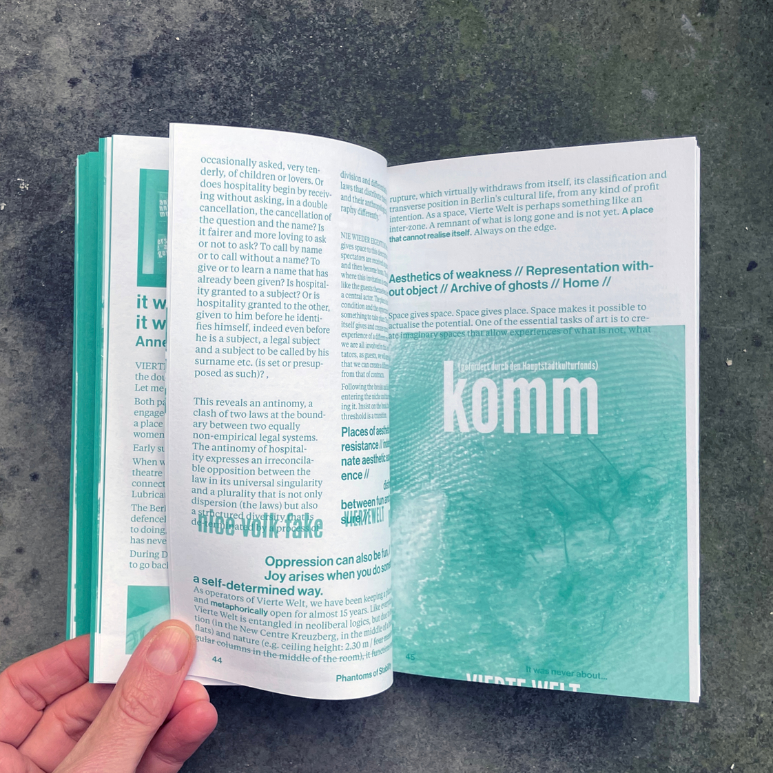 Andreas Liebmann establishes a dialogue about challenges and qualities of artistic self-instituting and the relation of the local work to specific areas of crises that matter in different ways to many self-instituted artistic spaces and practices. With contributions of Annett Hardegen and Dirk Cieslak (Vierte Welt, Berlin), Marijana Cvetkovic (Stanica/Station for dance, Magacin, Belgrade) and performance researcher Storm Møller Madsen (Copenhagen University).