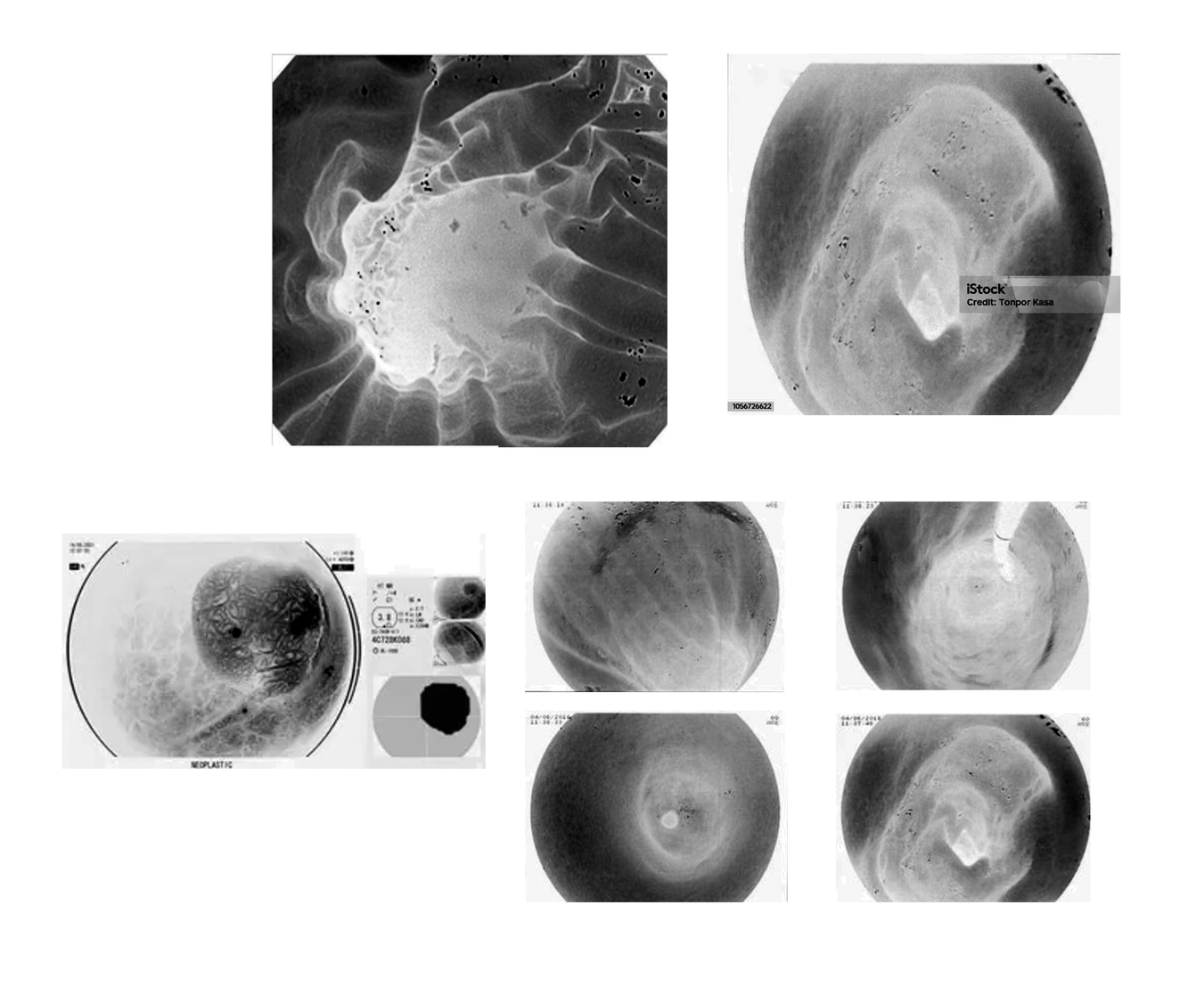 During the course of my research, I came across a series of medical examinations—gastroscopies and colonoscopies—performed on my mother. What struck me was the extraordinary visual resemblance between these internal medical images and the cave studies I had been conducting. The textures, the irregularities, the moist, fleshy surfaces, and the way light behaved in those confined spaces echoed the same qualities I had been exploring in representations of underground environments.
