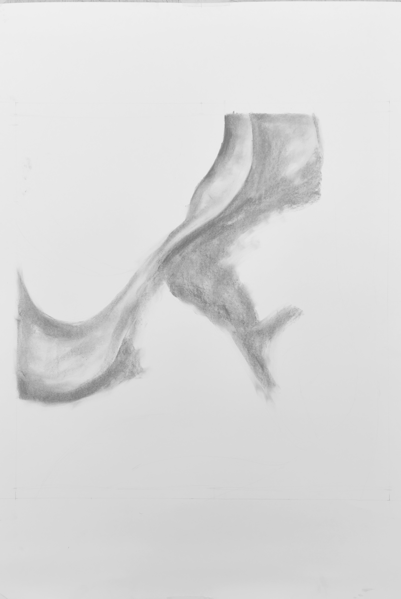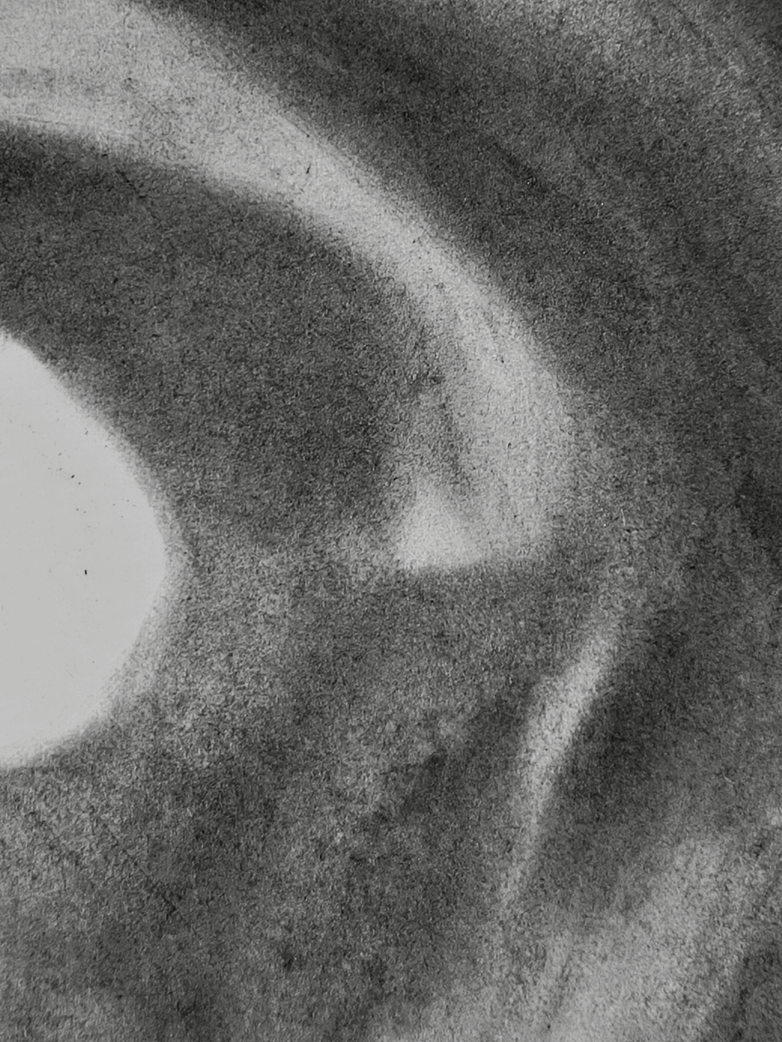 The notions of entry and exit within my visual research are articulated through a carefully constructed stratification of dark tonalities, which function as progressive indicators of spatial depth. This spatial articulation begins with the application of charcoal—used to establish an initial tonal groundwork across the surface. These foundational layers serve not only as a backdrop but as an atmospheric base upon which subsequent tonal shifts can emerge.
