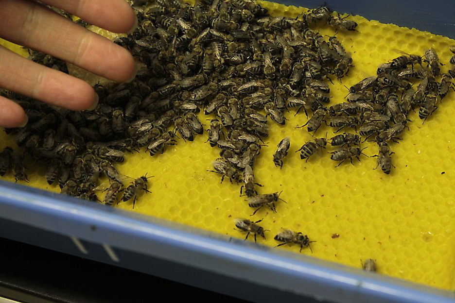 Experiment where real and artificial bees form a coupled system that organises decisions.