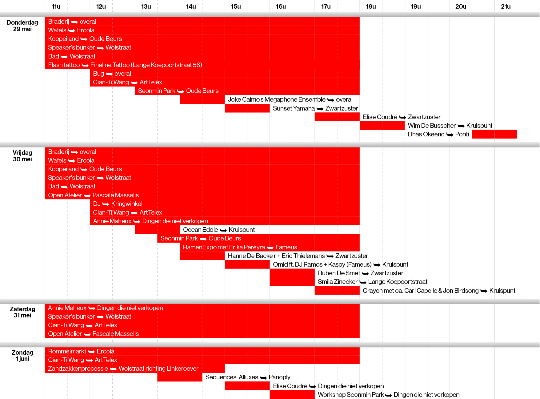 Een belangrijk element in het programma is de samenwerking met de masterstudenten In Situ van de Koninklijke Academie voor Schone Kunsten Antwerpen. Zij werken mee aan de artistieke vormgeving van het geheel: van de inrichting van kraampjes tot performances, installaties en straatinterventies. De studenten zijn de komende weken actief aanwezig in de straten om hun projecten verder vorm te geven in dialoog met de buurt.