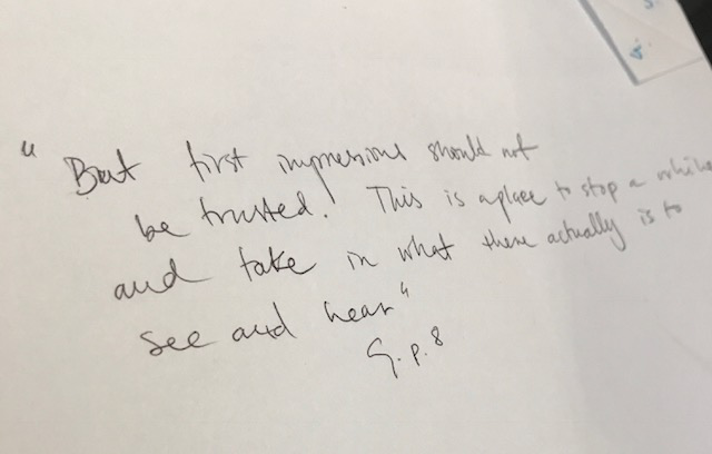 “Let us listen to a voice without voice. A voice that tells about sorrow and human disaster. A voice describing the fall of a city, its inhabitants, visitors and intruders. Let us listen to a voice performing what cannot be seen because of eyes being so full of tears. Let us listen to a voice that, without limitations, enters our bodies and minds until nothing else can be voiced. When voice passes its own self, only NOTHING remains. This Nothing is our HOPE. It is in the state of experiencing HOPE that we can live our lives in trust and peace. “